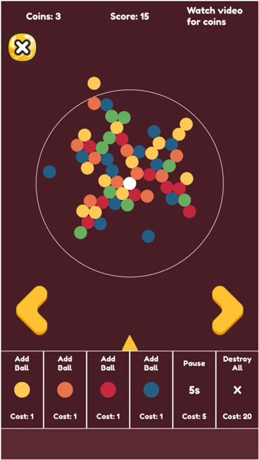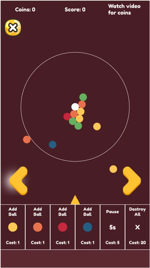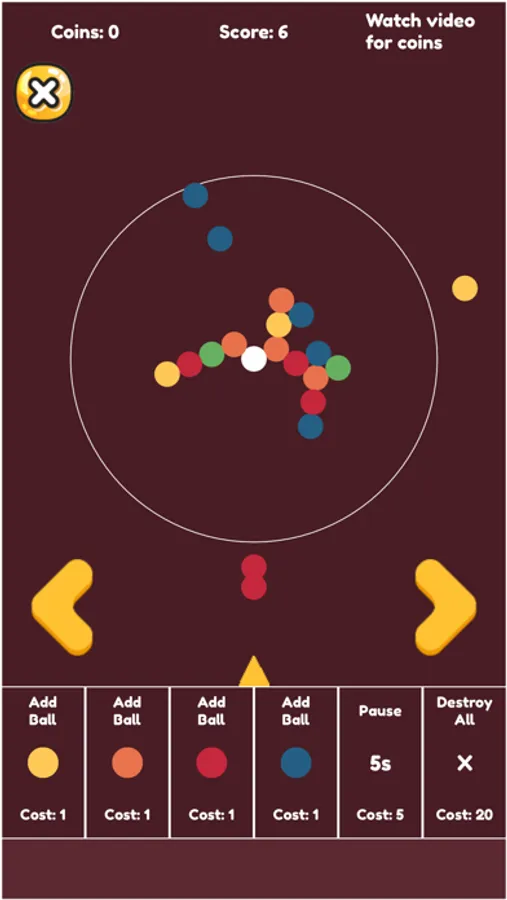 - Throw balls of a specific color from the bottom (fast taps lead to more balls).