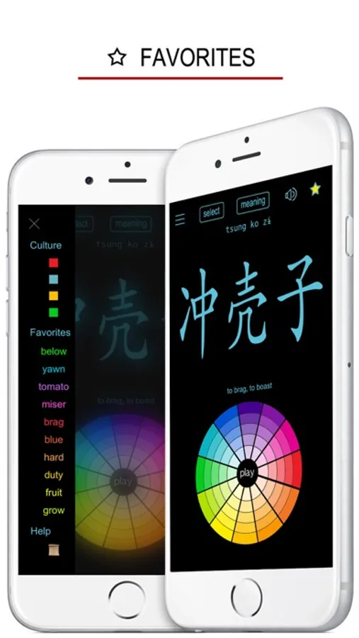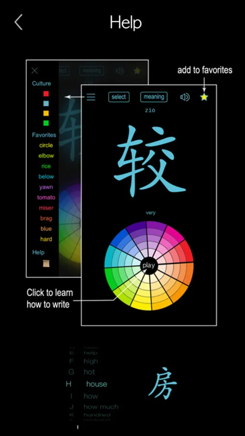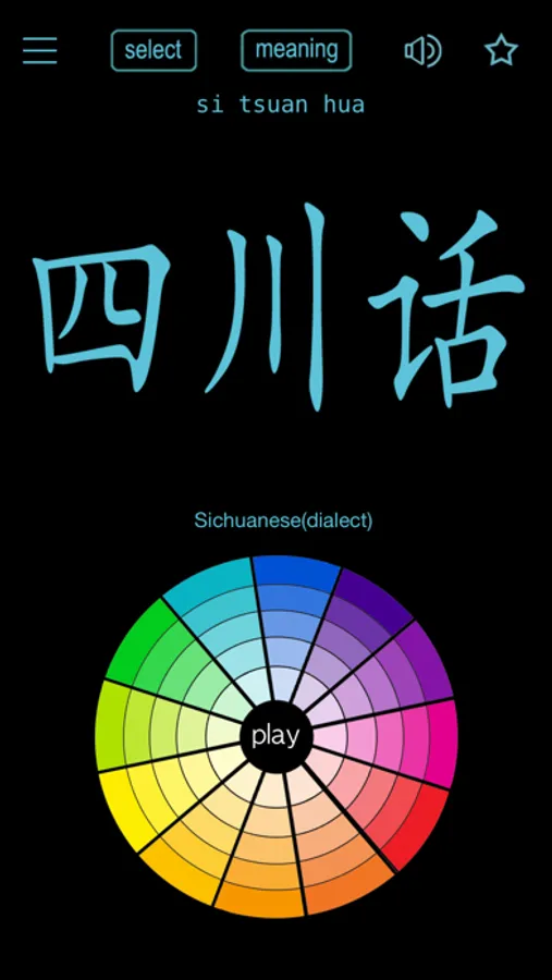 You can select the word in alphabetical order (English meanings) by clicking “select” in the menu bar. Basic everyday Sichuanese words!