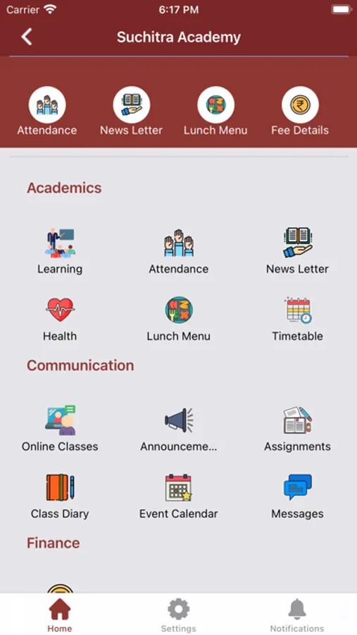 Suchitra Academy provides communication app for parents using which they can download school announcements,Class assignments, can see attendance and activity.