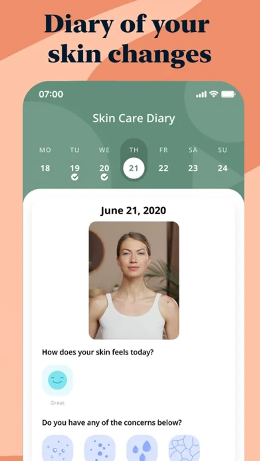 Skin care slows down the process of aging and brings peace of mind. Become the best version of yourself. Confident. Gorgeous. Happy. Tracking of your course improvements is essential. Monitor the progress of your skin condition day by day directly in the app’s journal.