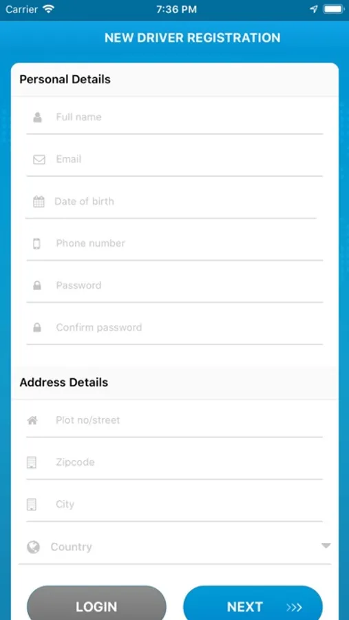 Testing process: After seeing the splash screen, Application will open the login screen where driver can use login credentials (Email: driver@mailinator.com and Password: 123456) for login. Application also have option to register new driver from the click on Sign Up link. Driver need to fill all required details for the registration process (Personal details, address, vehicle and licence information).
