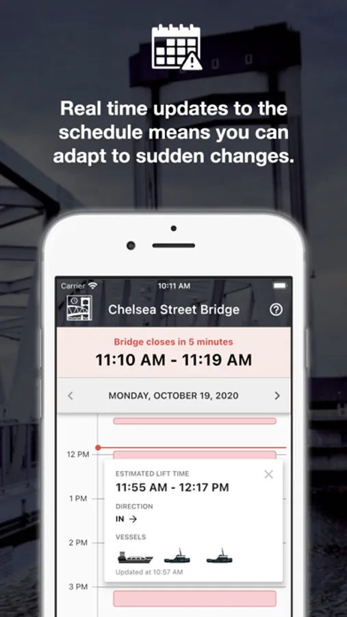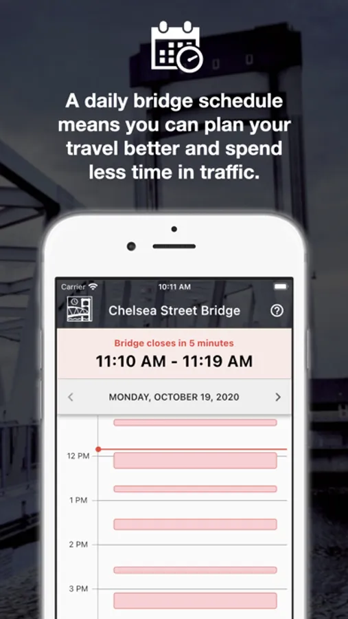 - A daily bridge schedule means you can plan your travel better and spend less time in traffic.