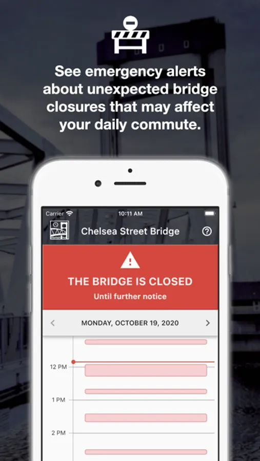 - See emergency alerts about unexpected bridge closures that may affect your daily commute.