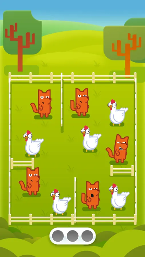 At each level of the game you will find yourself in new locations, where in 3 moves you will have to protect the chickens from foxes by building fences. The controls in the game are very simple and intuitive - you can play with one finger!