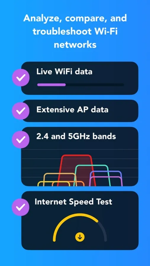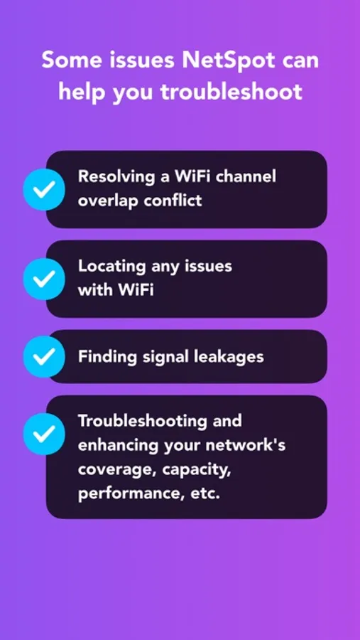 * 2.4 and 5GHz Bands supported: NetSpot works with both bands to discover networks;
