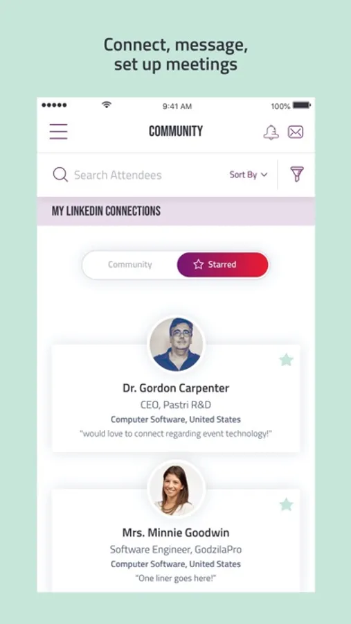 Make the most of your event with private one-on-one messaging, robust attendee profiles, and social media integrations.