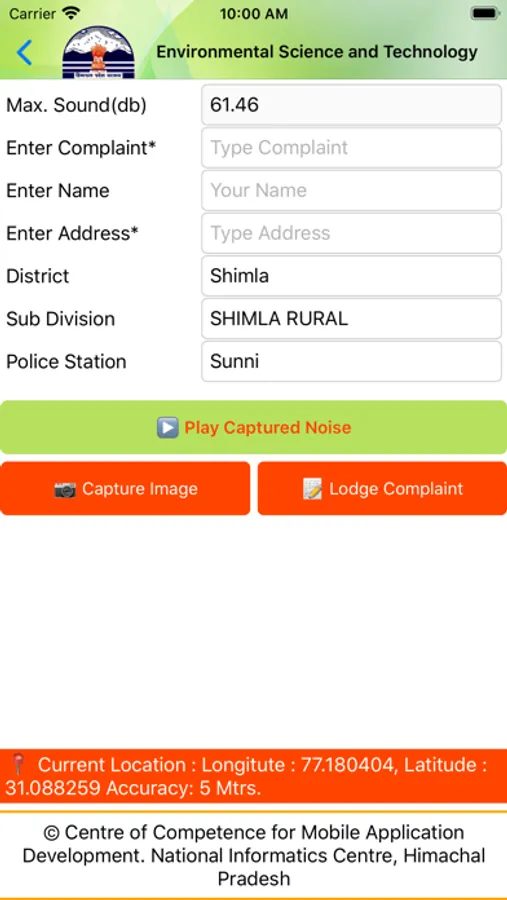 Shor Nahin app is developed for the convenience of the Citizen of Himachal Pradesh to report any Noise Pollution occurrence to the authorities for corrective measures. SHOR NAHIN is an initiative of Department of Environment, Science and Technology, HP in association with National Informatics Centre, Himachal Pradesh.