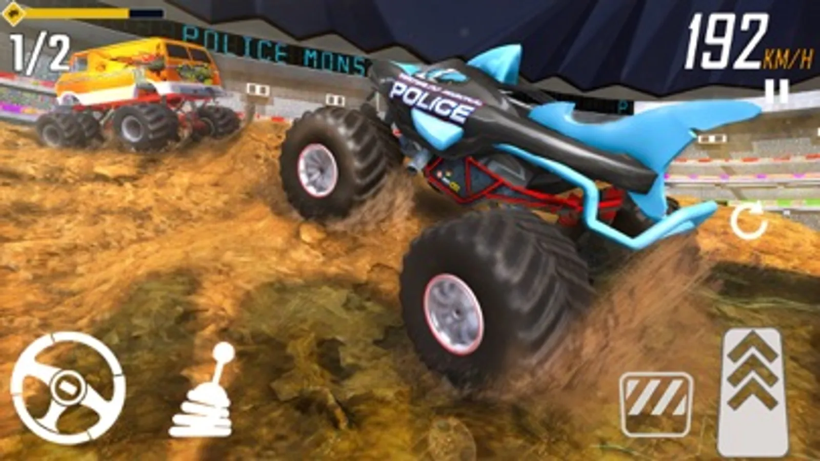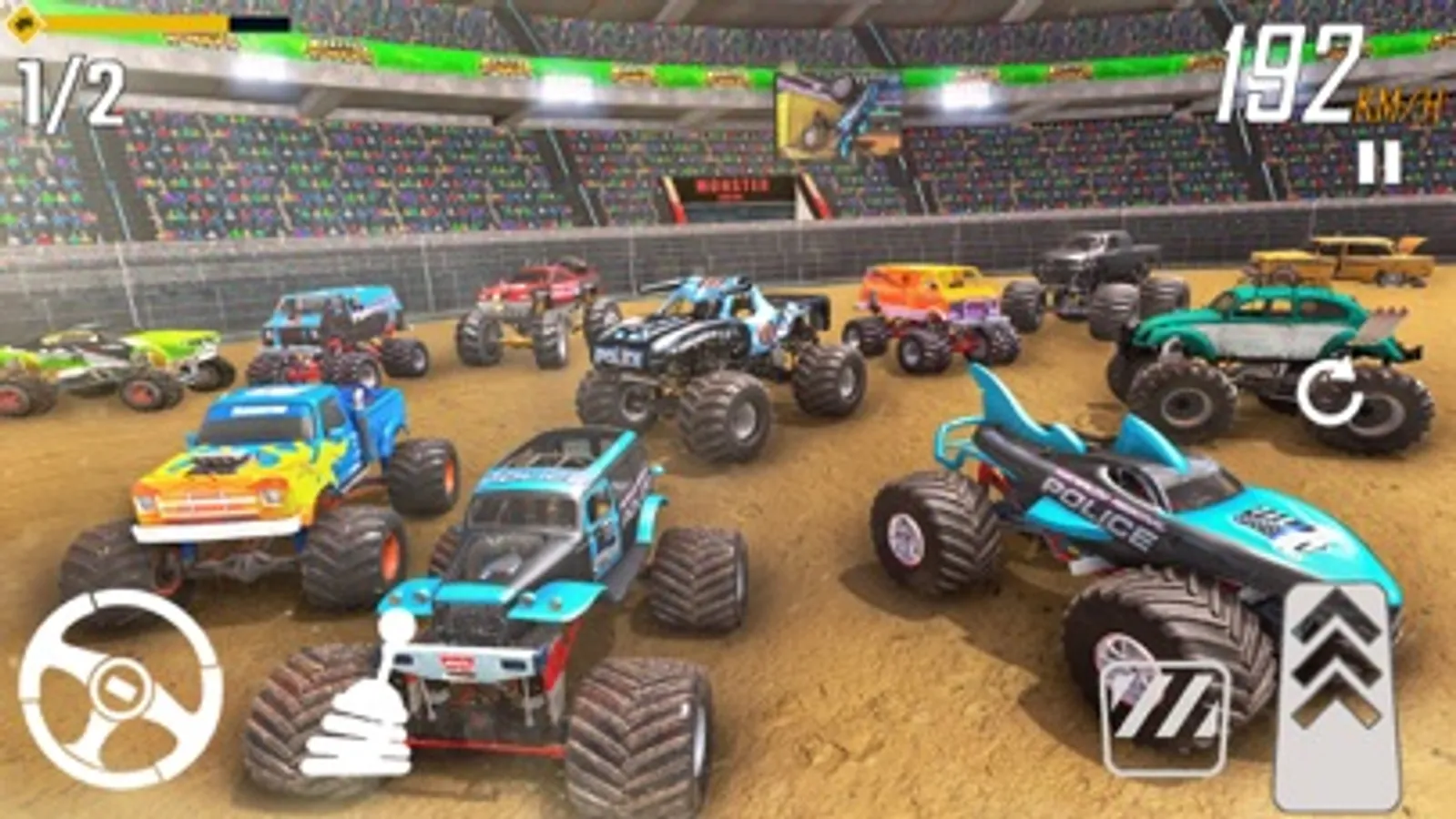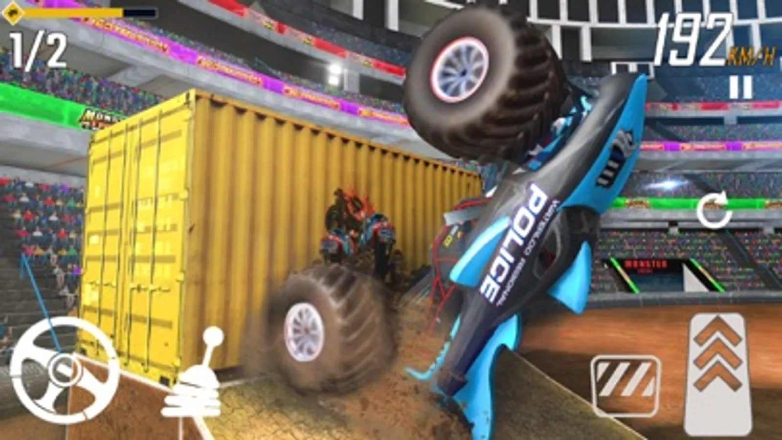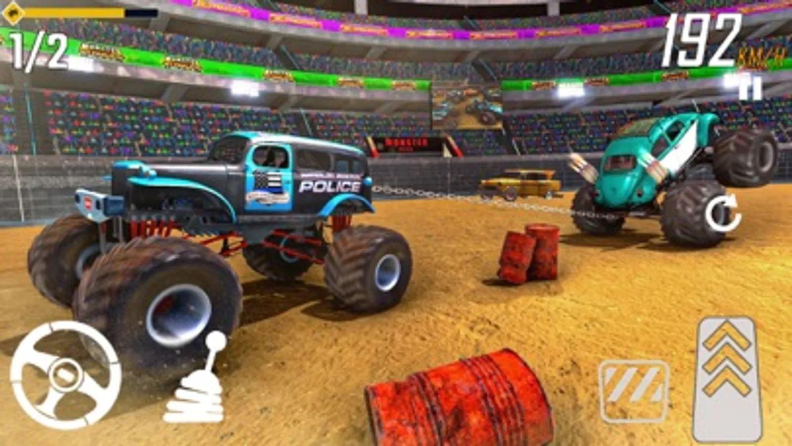 Drive police derby to perform demolition derby stunts and destroy enemy Monster Trucks, Vehicles to complete multiple challenging mods.
