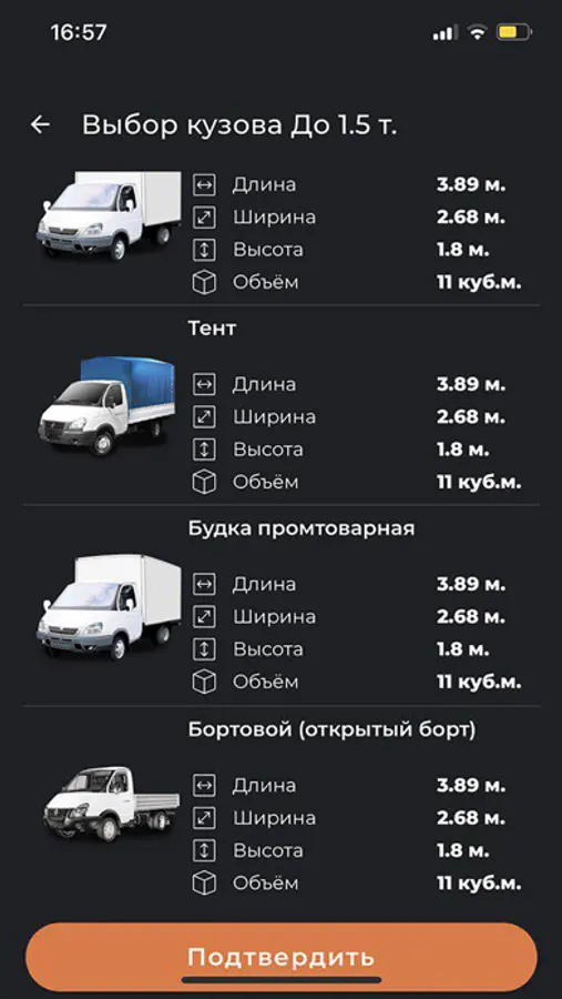 Сервис Taxigruzoff, моментально подберет ближайшего к адресу подачи перевозчика, учитывая все параметры заказа. Водитель мгновенно получит этот заказ в своем приложении Taxigruzoff Driver и с легкостью исполнит его.