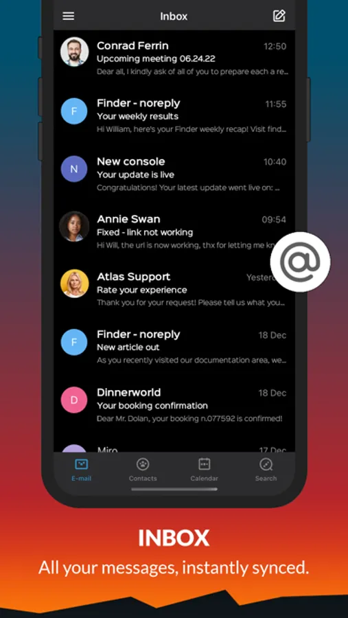 Seamlessly move from your desktop to the app and access all your e-mails, calendars, and contacts from your smartphone and tablet.