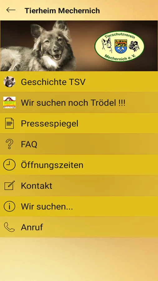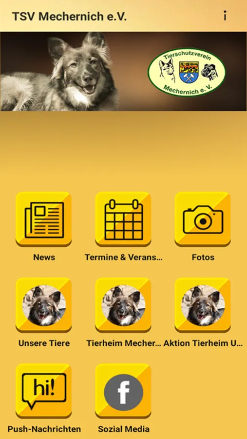 Über die App bekommt man den Ablauf beim TSV Mechernich e.V. und dem Tierheim Mechernich hautnah mit. Unter dem Button "News" findet man alles Aktuelle und bei "Termine und Veranstaltungen" alle Informationen zu unseren Veranstaltungen. Im Bereich "Fotos" stellen wir die ganze Breite der Tiere eines Kreistierheimes dar.