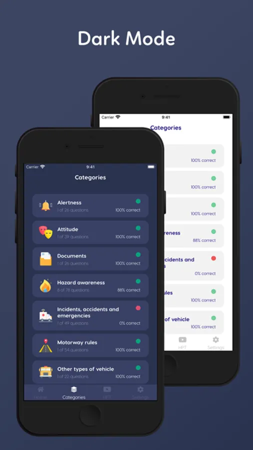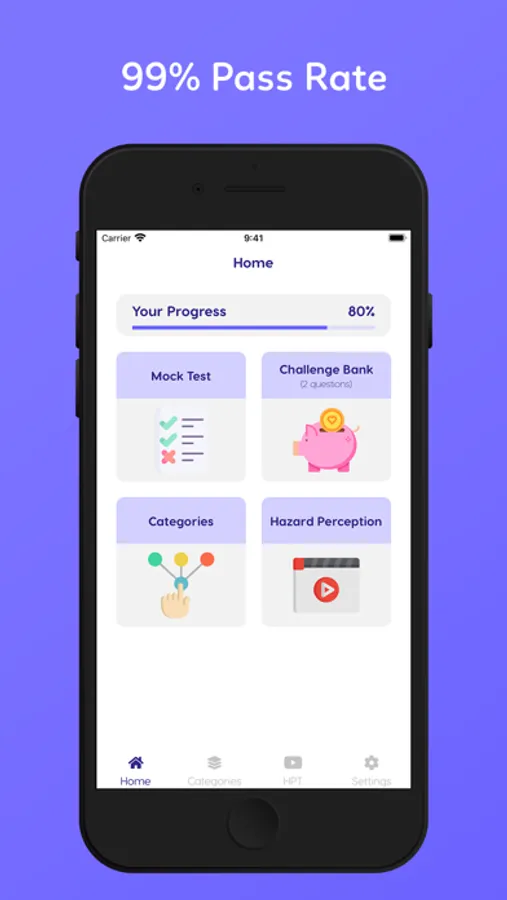 Simply download the app for free and follow instructions to set up. We strongly suggest to complete all sections of the app (both Theory & Hazard Perception). Use progress tracker to see when you are ready to book your theory test.