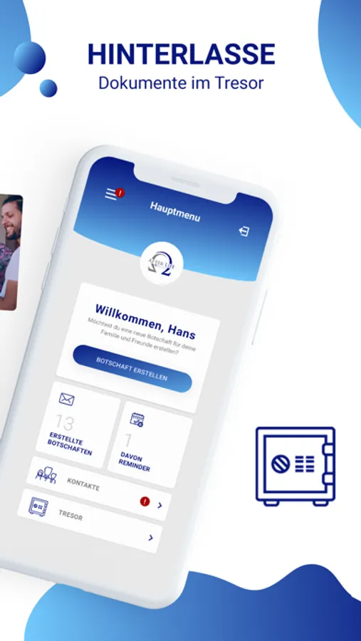 Für wichtige und hilfreiche Dokumente wie eingescannte Vertragsunterlagen und Zugangsdaten gibt es einen digitalen Tresor, der nach Deinem Ableben exklusiv für Deine ausgewählten Personen zugänglich wird. Alle erstellten Nachrichten und Kontakte werden auf regionalen Hochsicherheitsservern gespeichert und sind vor allen unerwünschten Zugriffen geschützt.