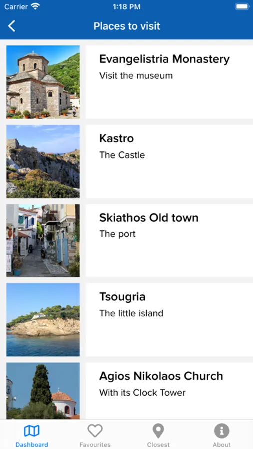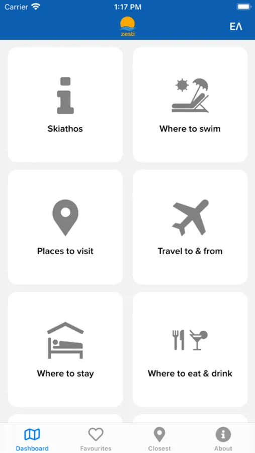 The Skiathos app is powered by our Zesti platform, and we work together with the people of the island, meaning its content will be constantly updated without you having to update the app.