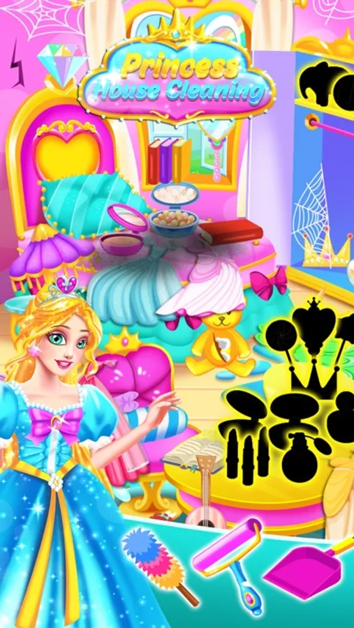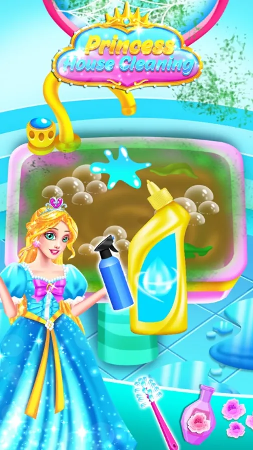 Polish up your cleaning skills and help clean up this pretty pink castle and make your beautiful home brand new once again!