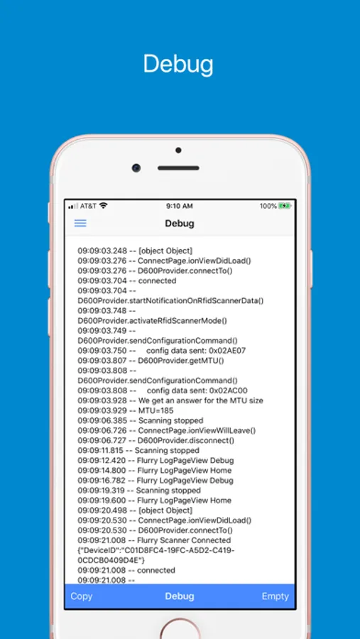 D600 Maintenance implements the user interface to upgrade firmware in the D600 Contactless Reader/Writer and perform other maintenance functions. To connect the D600 to this app, the D600 must be in App Bluetooth Profile.