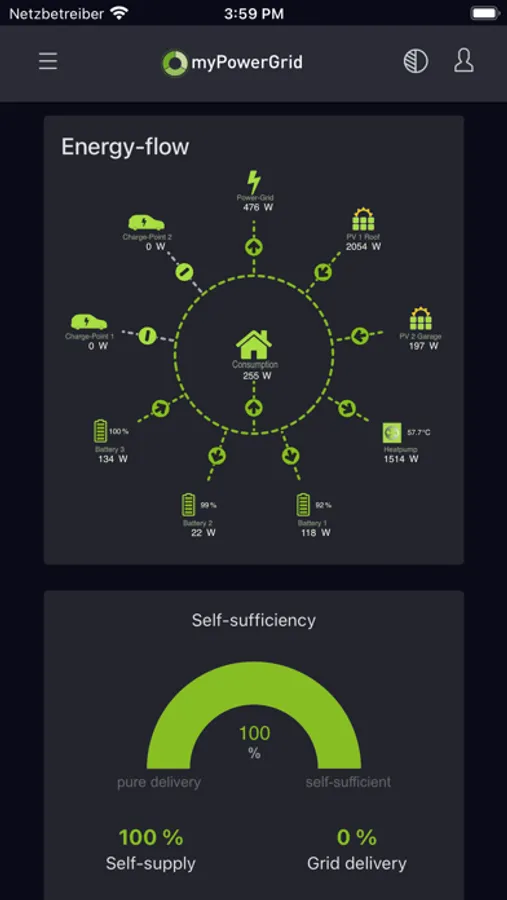 myPowerGrid is our solution for the intelligent control of energy flows in your own home or company. Our myPowerGrid app gives you the ability to monitor, control and analyze energy flows in your property to get the most out of your renewable energy. Each of your energy managers ("Amperix") is clearly displayed here in one platform, and can now be viewed on the go. Discover the possibilities of our algorithms and services and use them now even more comfortably!