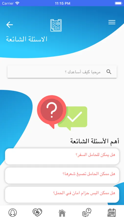 - يمكنك الإطلاع على الأسئلة المتكررة عن الحمل والولادة والحصول على التوعية اللازمة لها بإجابات موثوق منها من خلال صفحة الأسئلة الشائعة