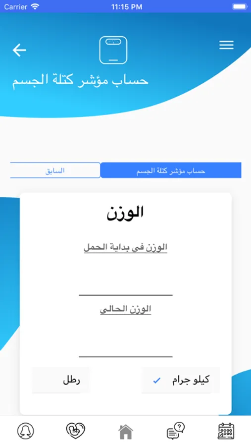 - يمكنك معرفة مؤشر كتلة الجسم الخاص بك بناء على طول ووزنك وكذلك زيادة الوزن المتاح لك حتى نهاية الحمل