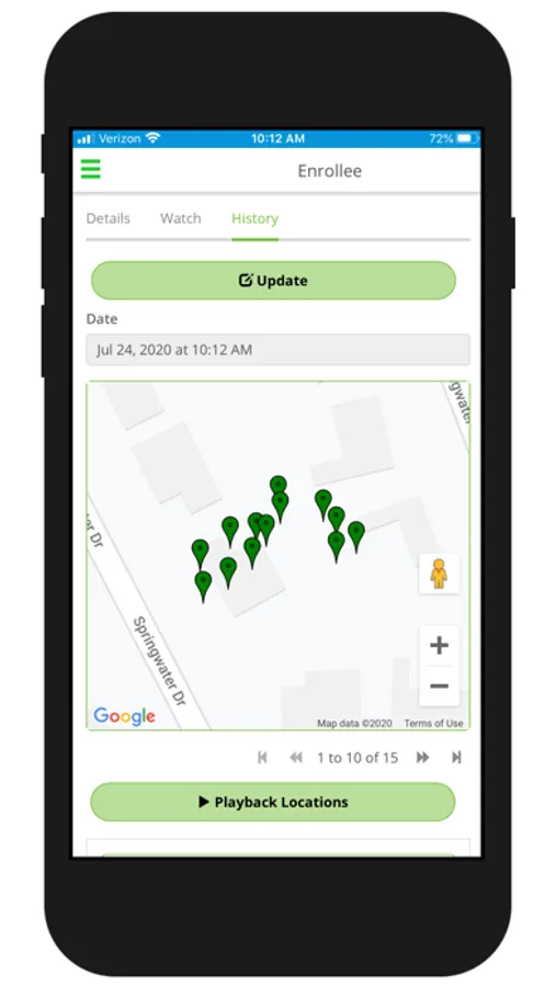 This application provides a way for an officer to perform functions and operations on the ShadoWatchTM tamper proof device used in corrections. The functions allows officers to locate, reboot, activate, deactivate, and message the device.