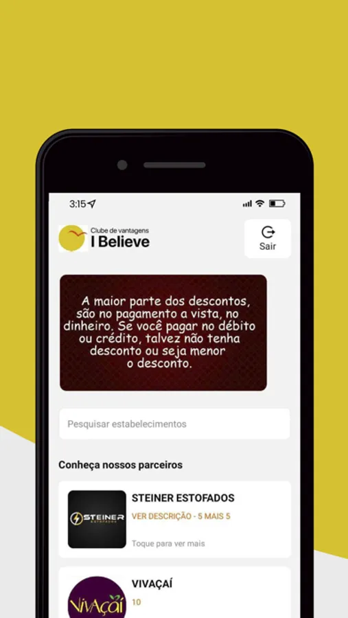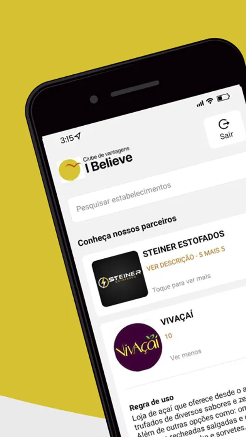 Aplicativo para os associados a rede i believe poderem controlar seus integrantes e acompanhar as lojas cadastradas.
