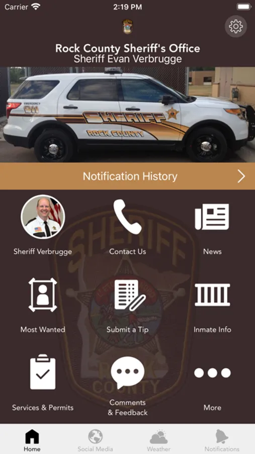 The Rock County Sheriff’s Office mobile application is an interactive app developed to help improve communication with area residents. The Rock County Sheriff App allows residents to connect with the Sheriff's Office by reporting crimes, submitting tips, and other interactive features, as well as providing the community the latest public safety news and information.
