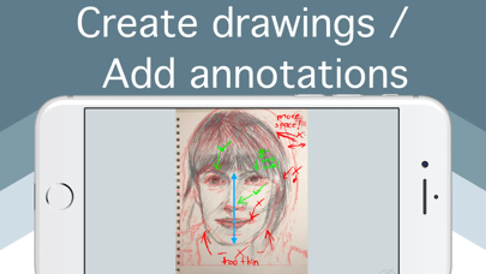 Just select a picture of your drawing and the reference image you used and choose an area to inspect. Drawing Proportions will align the two images so you can see if your drawing is correctly proportioned!