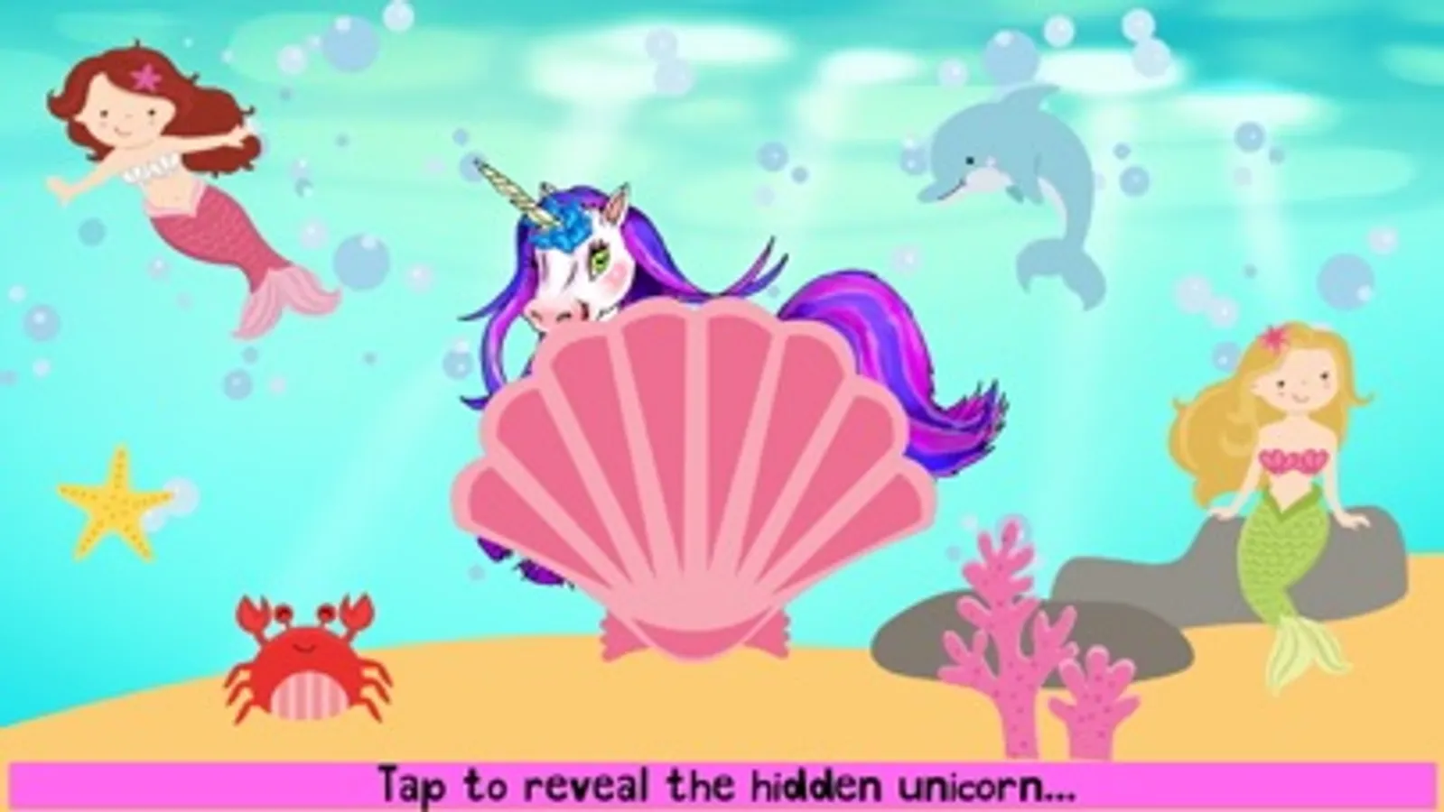 Little fingers love to tap, tap, tap, and the tap sounds are super fun and exciting because they get to tap and reveal a hidden unicorn! The first screen will appear with just one object, like a sea shell, heart, or diamond and every time you tap it another cute item will appear that goes along with the cute theme. Each object that appears is interactive fun because when they tap the objects, such as a dolphin in the under the sea tap sound, they will hear the sound it makes and see that object change color. And then when the hidden unicorn pops out the page turns into an interactive flashcard, with the words appearing beside everything that appeared, and when you tap it now it will say the what it is. It’s a creative and fun way to learn through play and teach letter and word recognition!