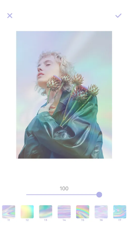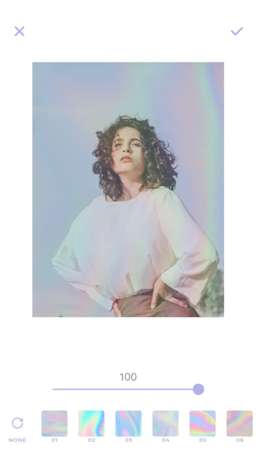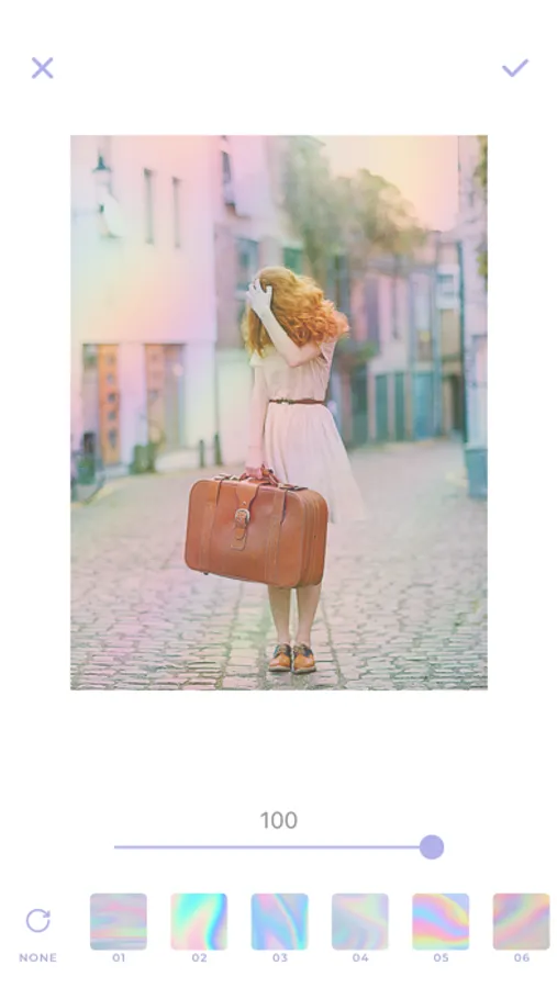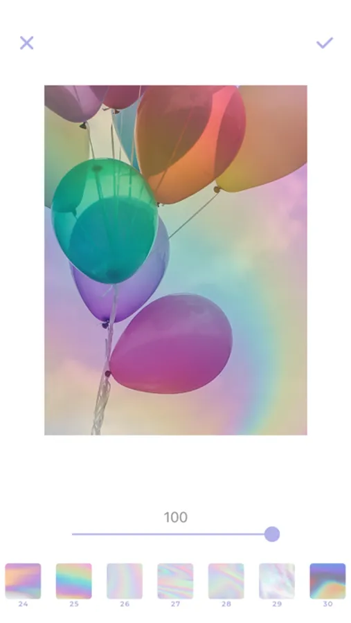 Snap a photo or choose one from your photo library. Then try a variety of artistic filter effects and pick one you like. You can adjust the intensity of the photo filter effects to give more subtle & natural rainbow gradient effects.