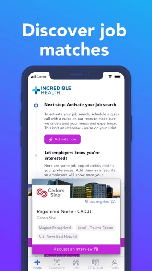 Incredible Health is the easiest way for RNs, nurse practitioners, and nursing leaders to find new permanent jobs, earn continuing education credits, and get career advice from thousands of other experienced nurses. You’ll have all the tools you need to advance your career.