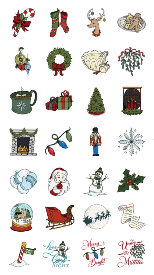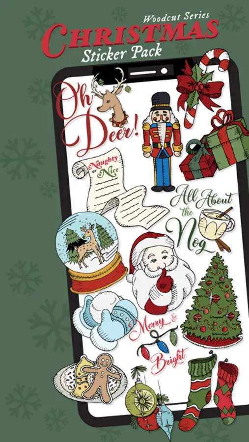 Tis the Season with our Christmas Sticker Pack! Designed in a ‘woodcut’ style, these stickers evoke a classic sense of Christmas with the nostalgia, whimsy, and style, making them the perfect added dash of Cheer and Holiday spirit in any conversation. So pass the nog, throw another log on the fire, and cozy up with your conversations to family and friends with the endless possibilities of these 35 Christmas stickers!