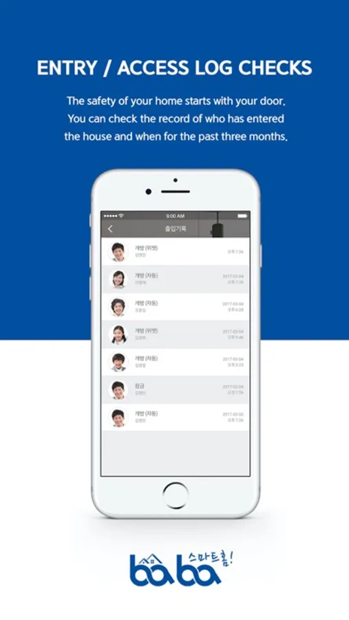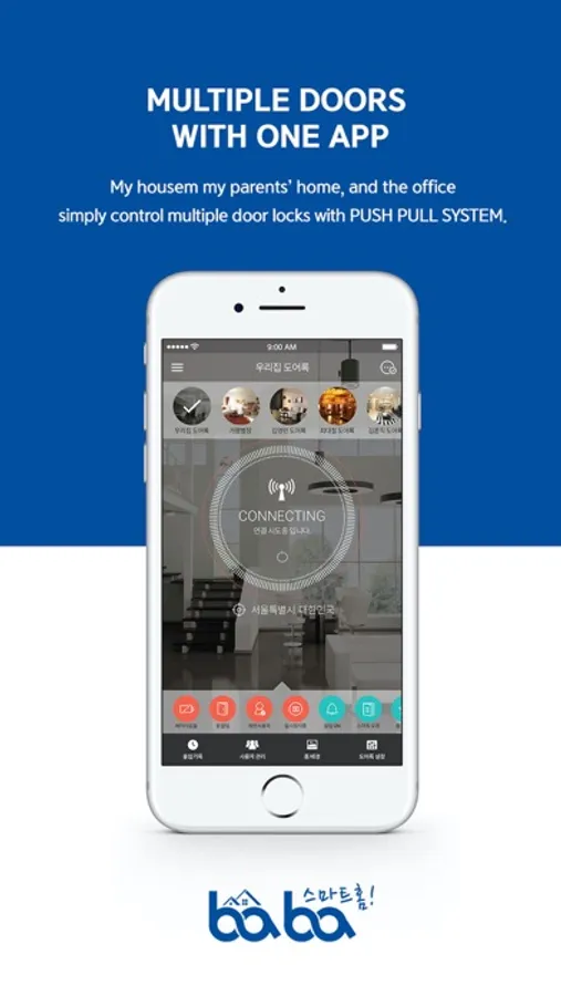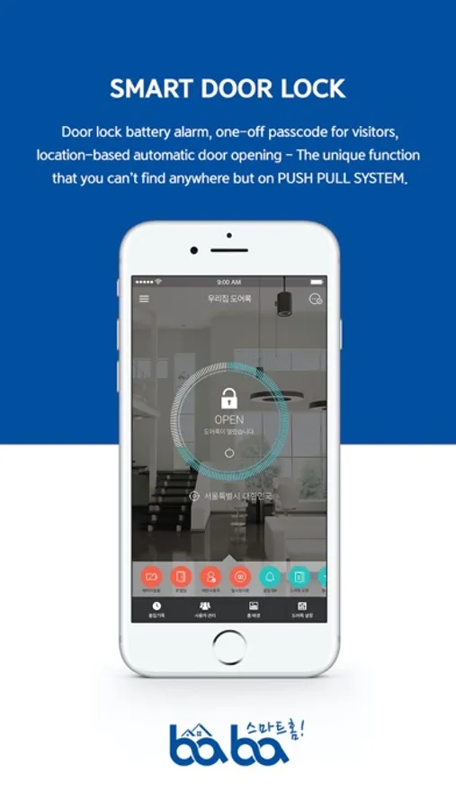 "Pushpullbaba" is smart phone application for managing BABA door lock. Use "Pushpullbaba" mobile application for more convenient and secure door lock management.