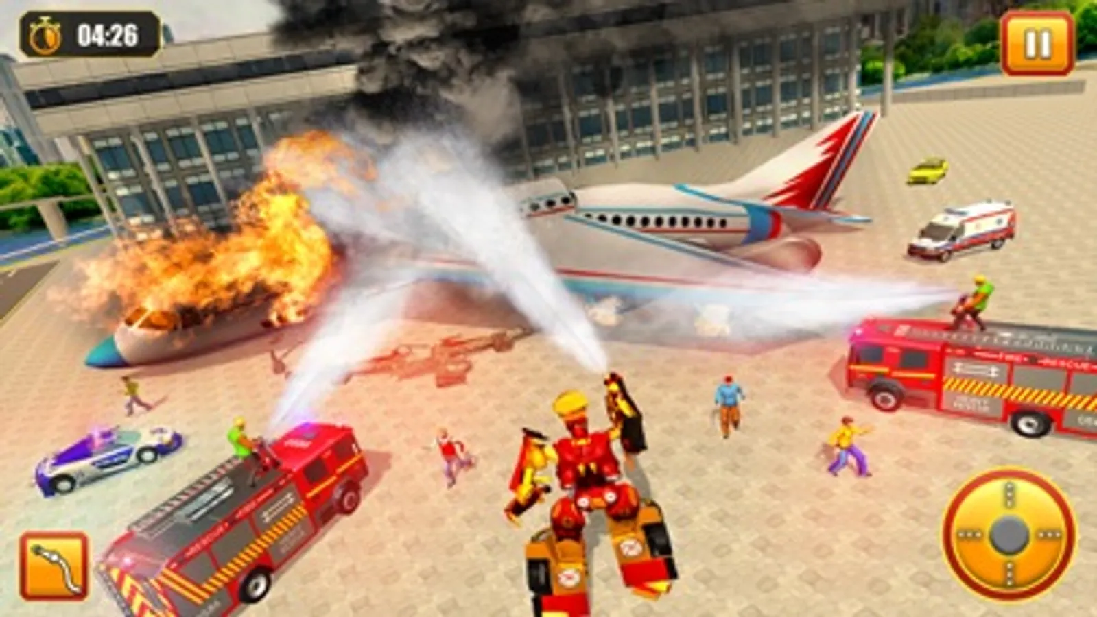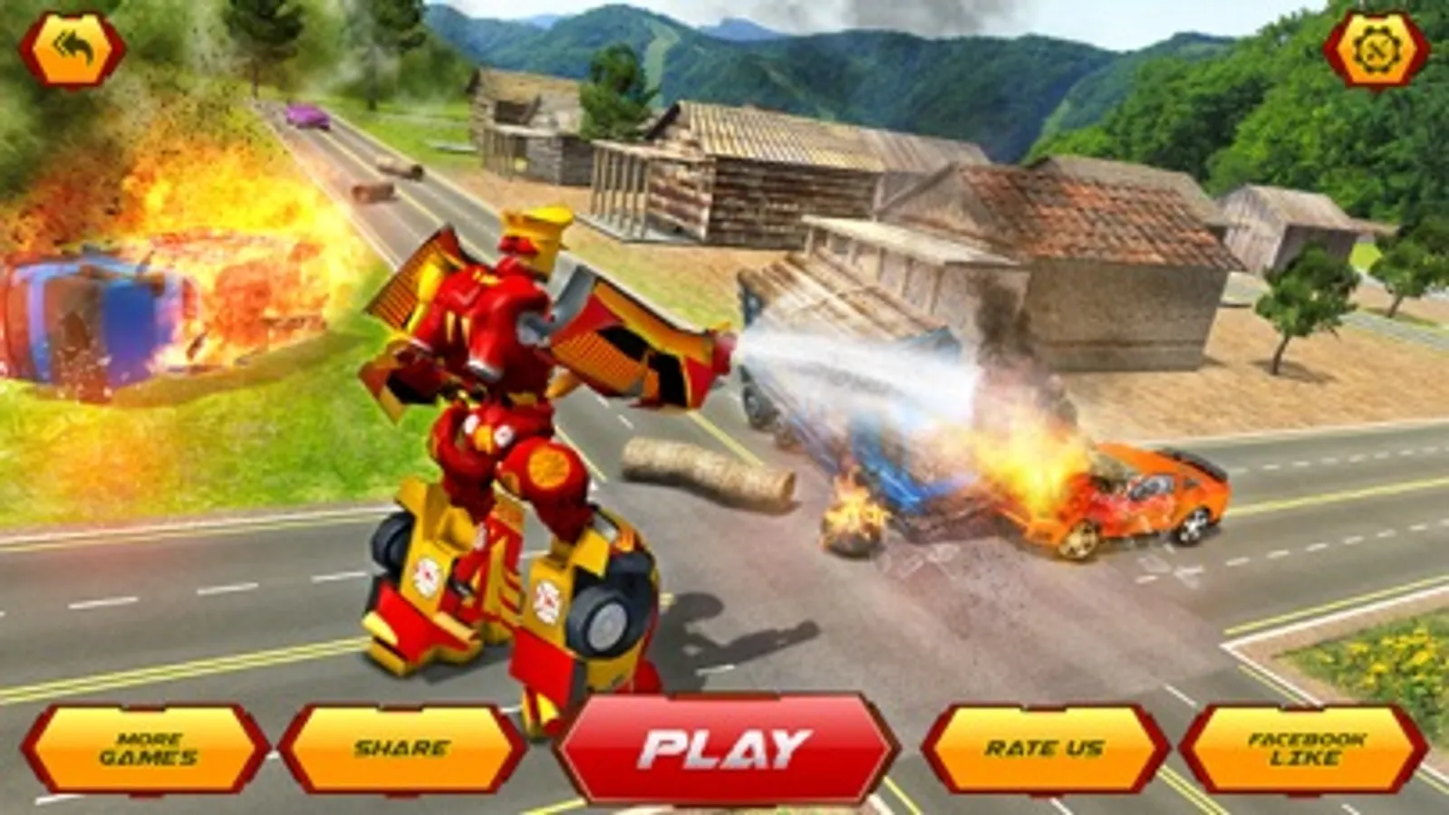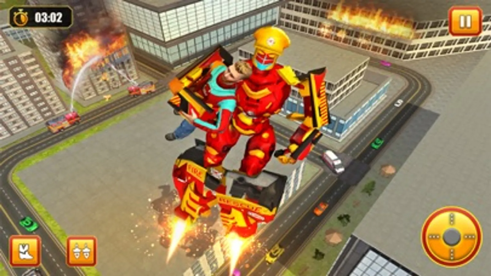 Welcome to the new firefighter robot transformation game 2020 in which you are able to transform the flying robots into the firefighter truck.