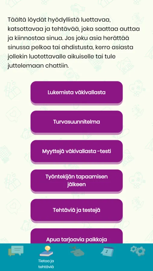 - Tietoa ja tekemistä omien kokemusten pohtimiseen