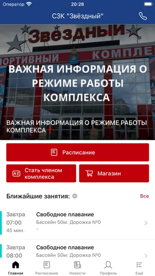 - ознакомиться со специальными предложениями комплекса и узнать о предстоящих мероприятиях;