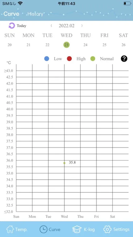 If the temperature measurement result exceeds the preset upper and lower limits, the color of the graph displayed on the smartphone will change to notify you.