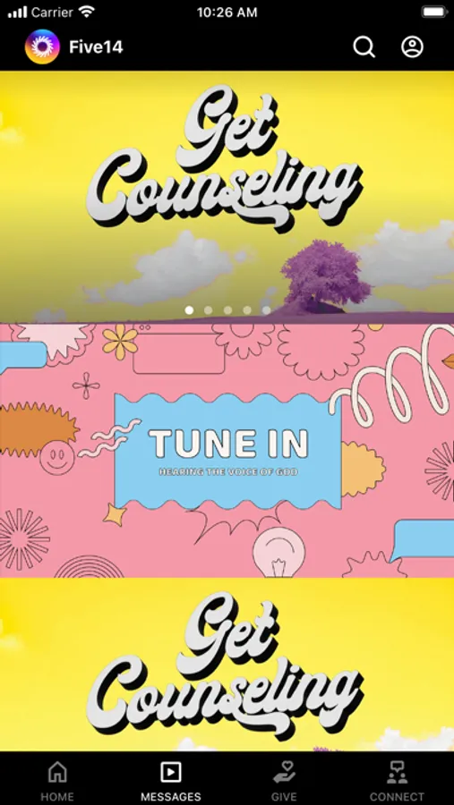 The Five14 Church App is the main tool for staying connected with everything going on within our church. Catch up on current or past message series, take message specific notes that stay attached to that message on your device, live stream straight from the app, download messages to watch or listen to off-line, connect with small groups, discover events, give directly through the app, and much more!