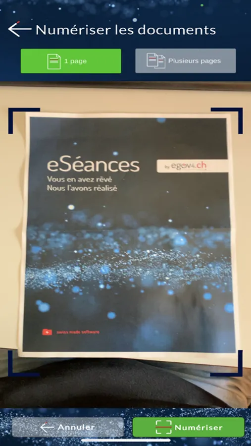 L'application dédiée à la solution eseances.ch. Cette application vous permet notamment de pouvoir authentifier vos utilisateurs de manière sûre (2FA) et de scanner les pièces jointes de vos séances.