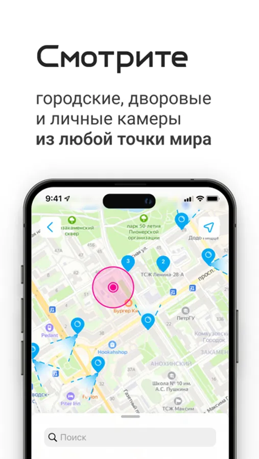 Смотрите видео с городских, дворовых и персональных камер в режиме online.