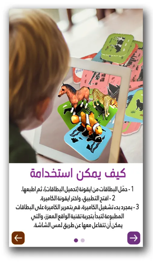 یعد نظام التعلیم بالواقع المعزز الذي طورناه ھو أروع تطبیق لتعلم الحروف الھجائیة العربیة وأكثرھا فائدة، فقد تم تصمیمه باستخدام تقنیة الواقع المعزز المذھلة، والتي ترتكز على أسالیب التعلم الأكثر ابتكاراً، فھي بالإضافة لتعلیم الحروف الھجائیة تتیح للأطفال استكشاف ھیاكل الحیوانات بشكل مثیر للدھشة.