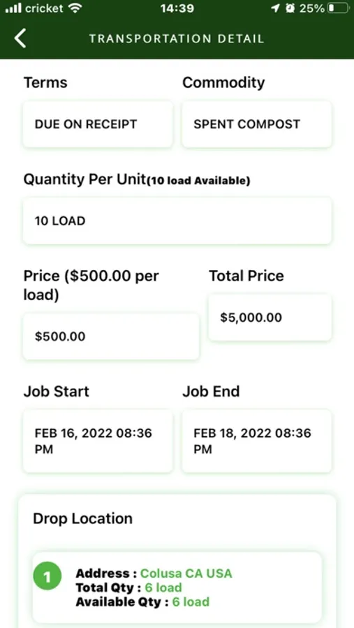 Mobile App to facilitate the transportation of agricultural waste. Manage the distribution and logistics between Drivers and tasks Navigation to pinned locations (pickup/drop off) for drivers Drivers are able to input weight tags with photos on pickup and upload photos verifying deliveries on drop off Create invoices