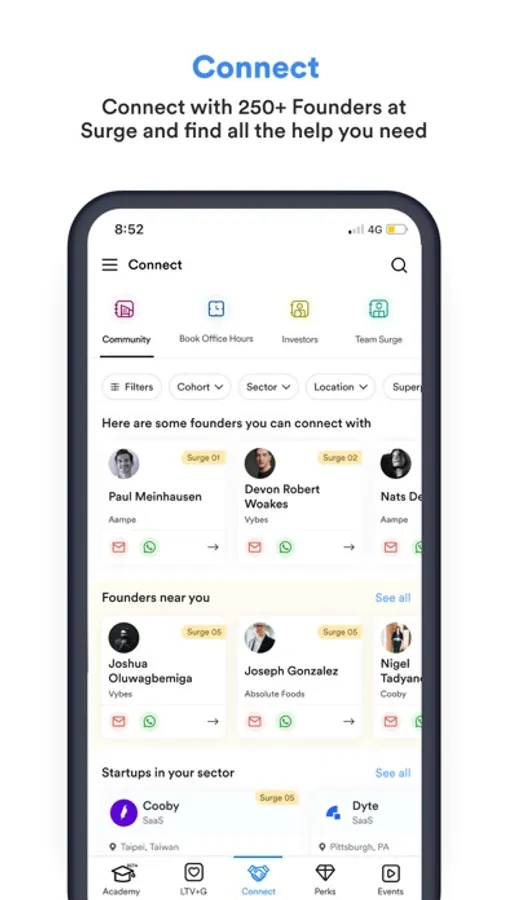 - Connect with founders in your cohort, your city through a quick DM. As a founder, know who’s on this journey with you: You’re part of something bigger!