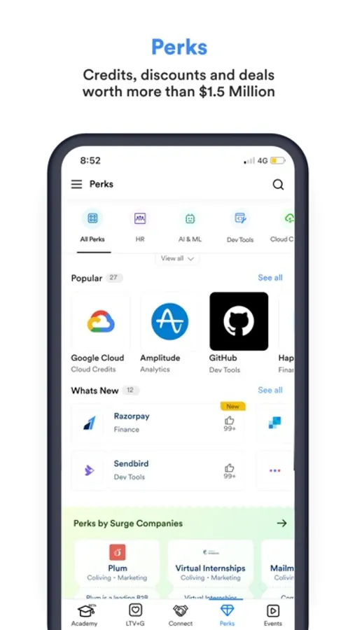 - Perks: We want to make it easier for you as a founder to get to market quickly with existing products.