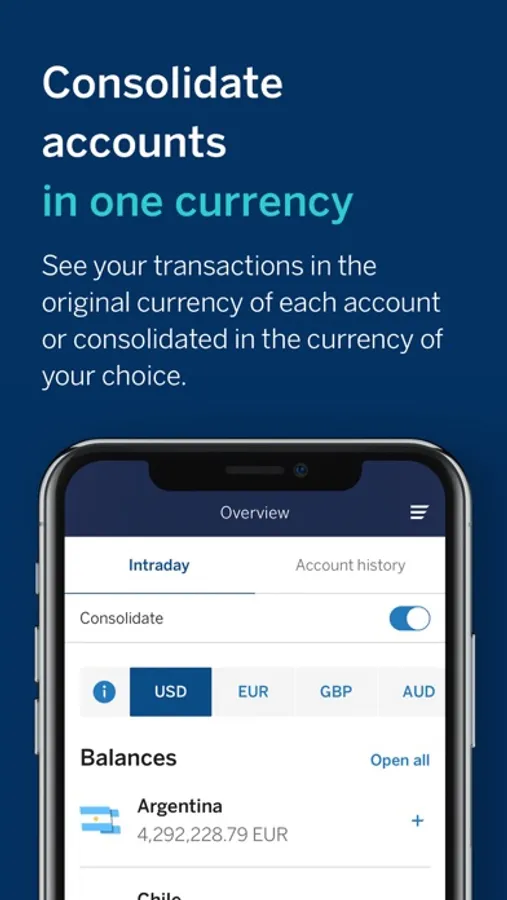 > You can view all your accounts in one currency at a glance, as well as consolidate balances.