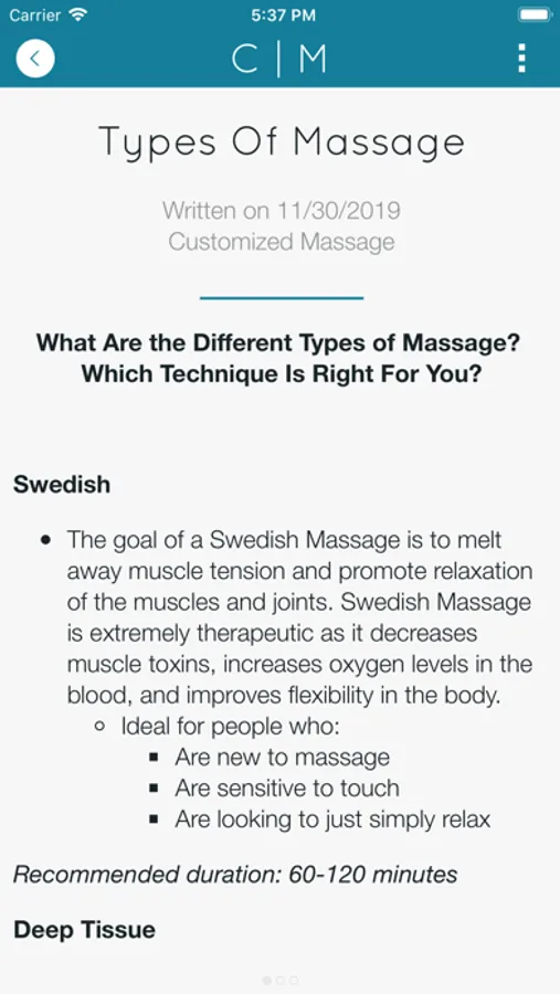 Relaxation scheduling at your finger tips. Take a break from your day and schedule your massage! The simplicity of our mobile app allows you to seamlessly plan your visit with little to no effort at all. We've got your back!