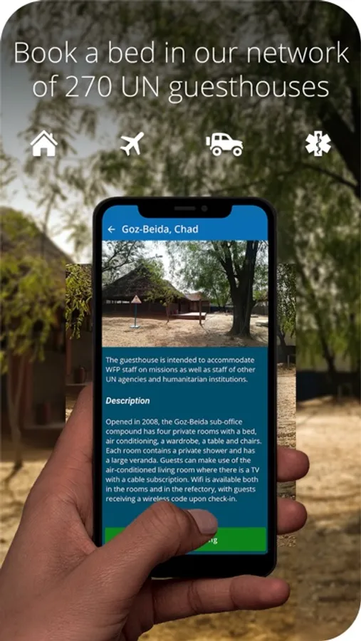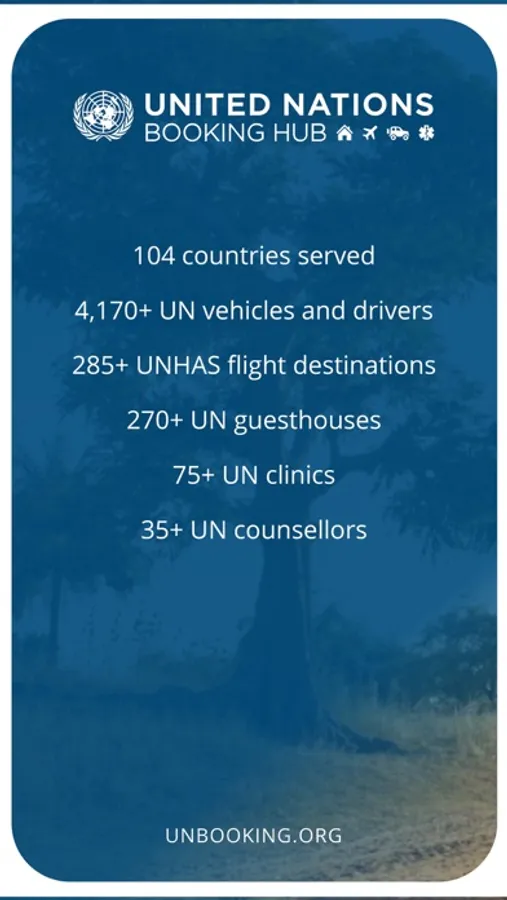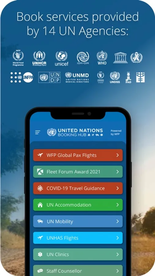 Featuring services by WFP, UNHCR, UNICEF, IOM, IFAD, WHO, UNFPA, UNDP, UNDSS, UNWOMEN, UNAIDS, UNESCO, UNHAS and UNMD you can now book services in 104 countries for: