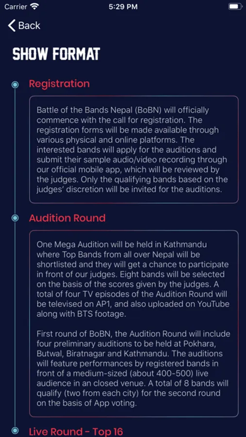 Battle of the Bands Nepal is televised musical band competition, broadcast on AP1 television channel. Created and produced by Turnpike Event Pvt Ltd, Nepal; it is the first national edition of what has been planned to be a legacy musical event in years to come. It is an elimination-based reality television show that will search for the “next biggest band” in Nepal on its each edition. The qualification-criteria relies on bands’ performance, which will be scored by the judges and voted by the public.