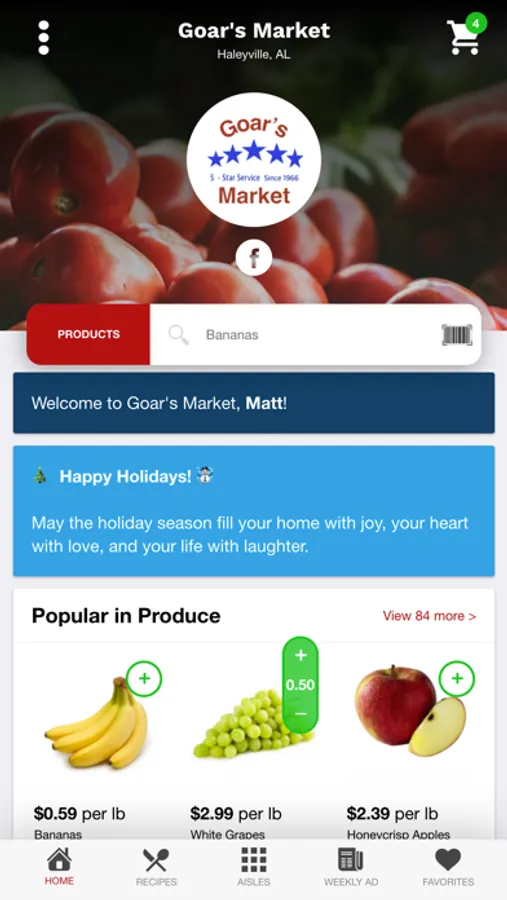 Order your groceries from Goar's Market on the go on your mobile device or from your iPad on your couch. Our award-winning grocery app makes grocery shopping a breeze with quick access to our weekly circular, an easy-to-use product search, detailed product details and labeling, tasty recipes and family meal planning tools. What could be better than that?