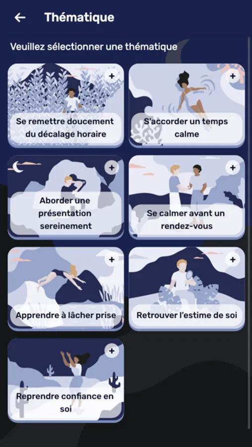 Choose the theme that best matches your mood (stressed, tired, etc…). And if needed, take advantage of the Nap&Up guide to help you make the right choice.