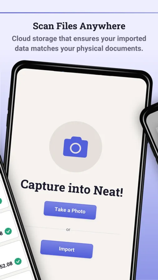 Stop spending time typing in your data. Neat automatically extracts info from your receipts and invoices to give you a complete financial picture. You can organize your documents and never have to worry about running out of storage.